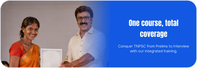 Prepare for TNPSC Group 1, Group 2, Group 2A and Group 4 exams with structured live classes, mock tests, and expert mentorship.